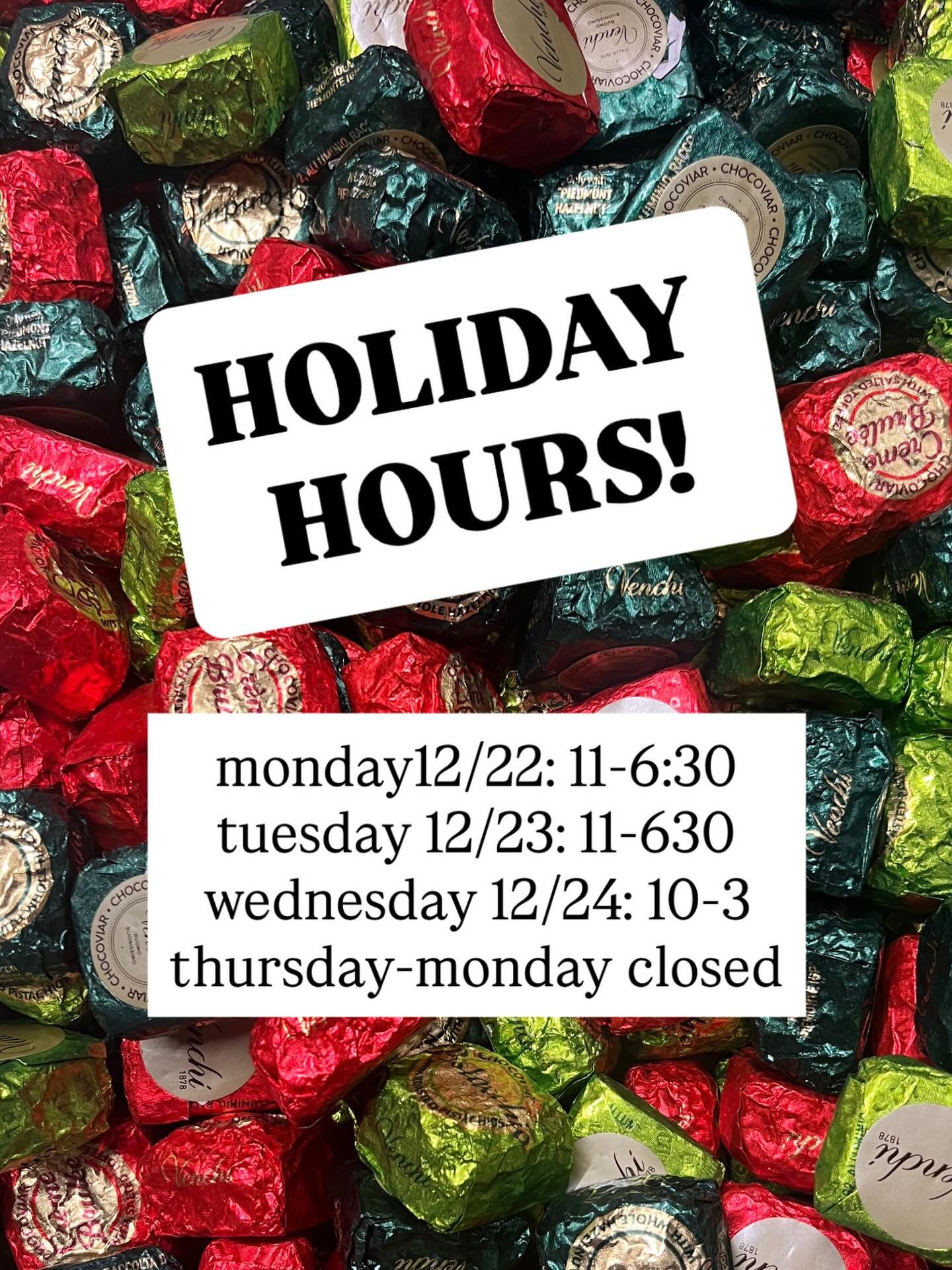 CHRISTMAS HOURS (week of 12/22)